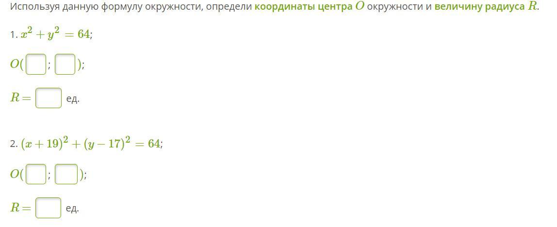 ( х - h ) ² + ( у - к ) ² = r ²; О ( h; к )