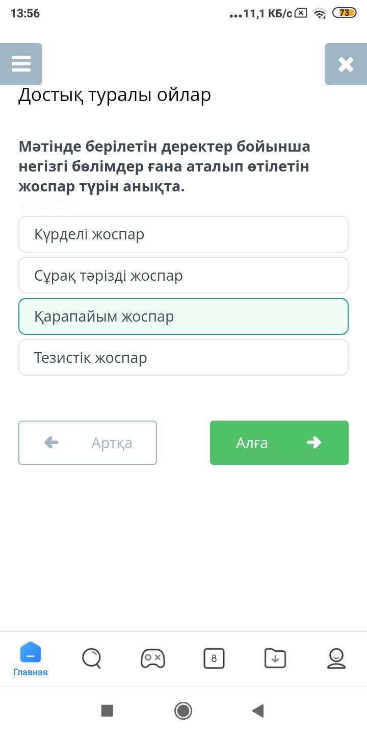 Мәтінде берілетін деректер бойынша негізгі бөлімдер ғана аталып өтілетін жоспар түрін анықта.