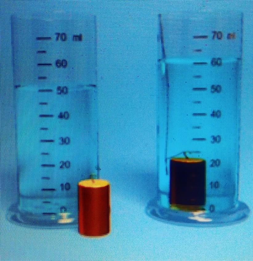 На рисунке показана мензурка с Жидкостью до и после погружения тела