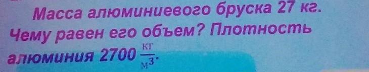 V=m/P=27 кг:2700 кг/м^3=0,01 м^3