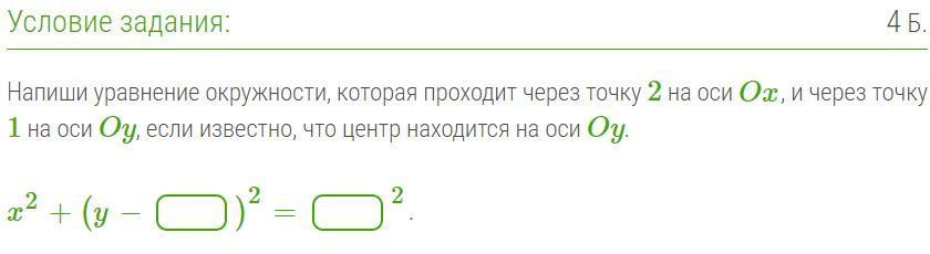 Центр окружности равноудалён от этих двух точек (на оси Ох и на оси Оу).