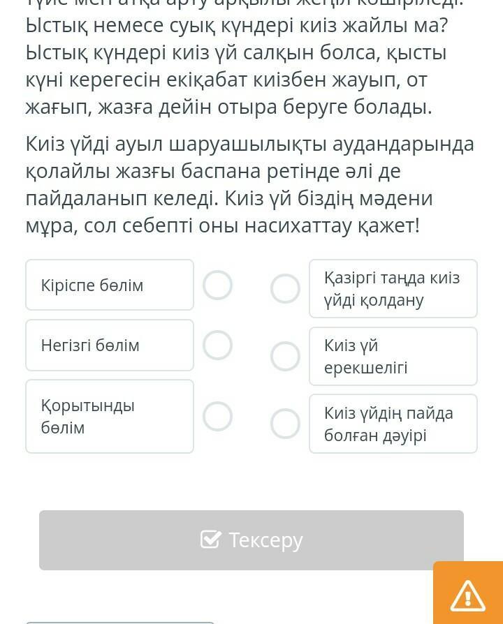 Негізгі бөлім-Киіз үйдің ерекшелігі.