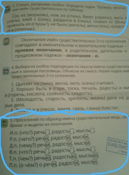Сок из моркови(из чего ?) Р. п. Нож из стали(из чего?) Р.п. Букет сирени(чего?) Р.п. Жить в степи(где?) П.п. Хлеб с солью( с чем?) Т.п. Раздался в тиши( где?) П.п. Плакал от боли ( от чего ?) Р.п. Приехать из глуши( из чего ?) Р.п. Не было метели ( чего ?) Р.п. Ветки ели( чего?) Р.п. Нуждаться в помощи( в чём?) П.п. :)