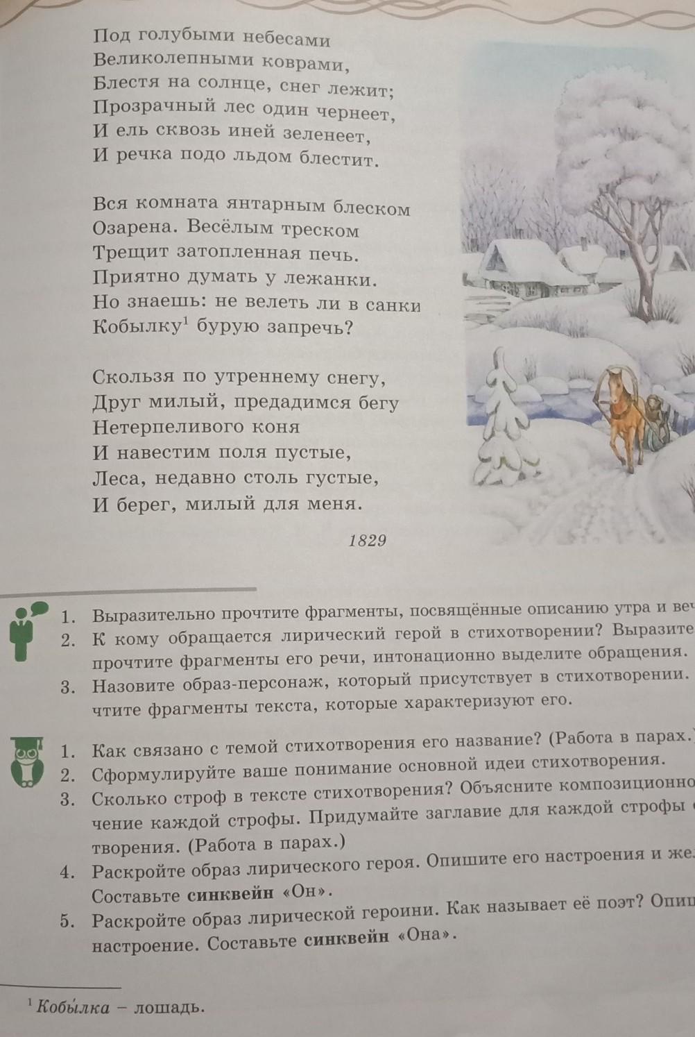 Назовите образ персонаж который присутствует в стихотворении Прочтите фрагменты текста которые характеризуют его Зимнее утро