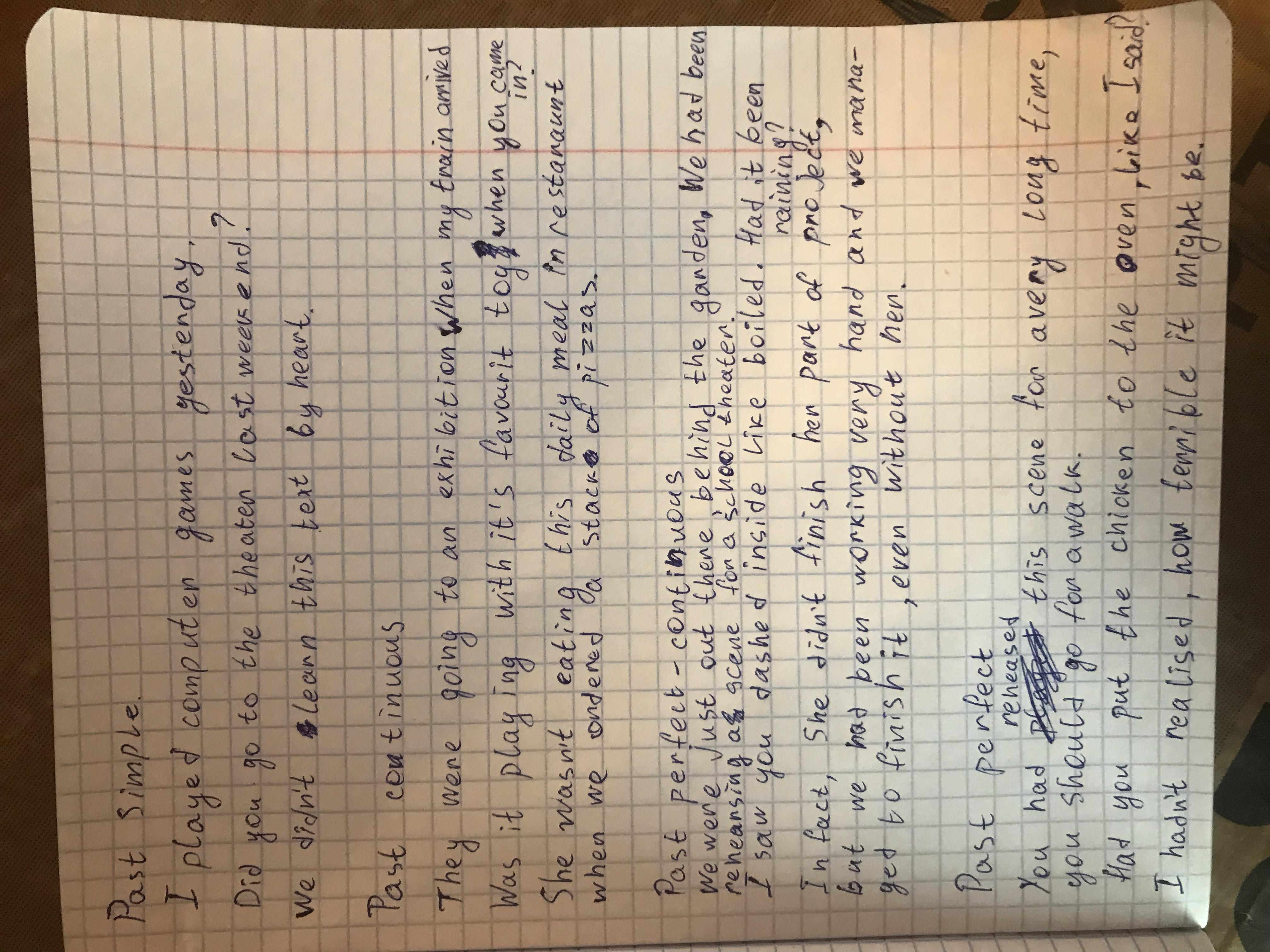 Ответ на фото распределён по группам времён Past