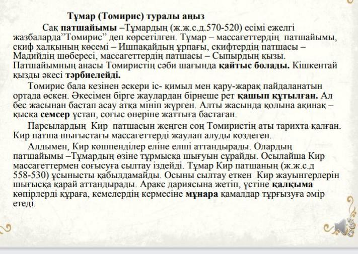 1) Сақ патшайым Тұмардың есімі ежелгі жазбаларда не деп көрсетілді?