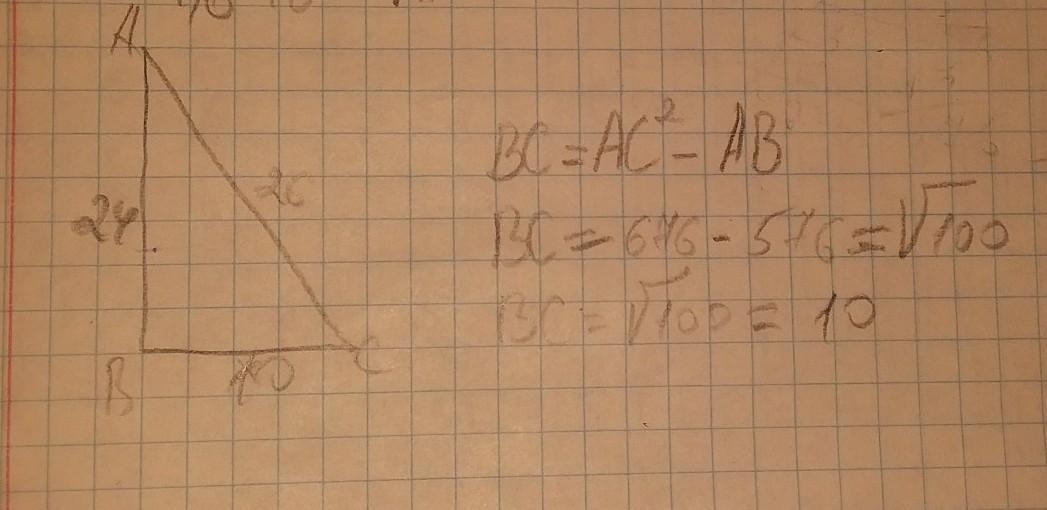 Найдите наименьшую высоту прямоугольного треугольника катет гипотенуза которого равны 24 и 26 см