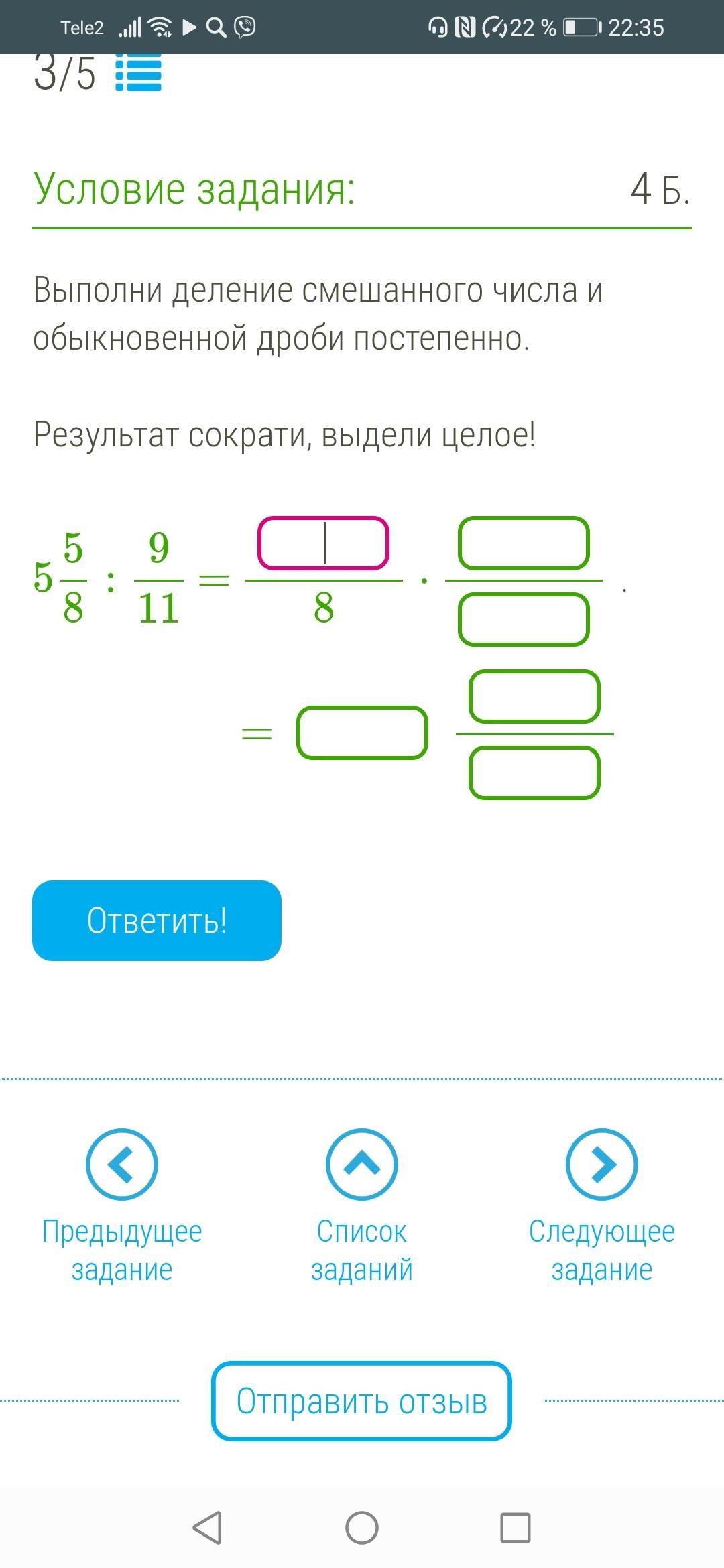 Выполни деление смешанного числа и обыкновенной дроби постепенно.