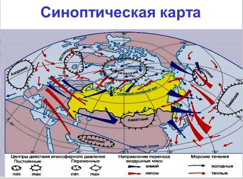 Как называется карта, на которой условными знаками обозначено состояние элементов погоды и явлений в пункте наблюдения? Срочно