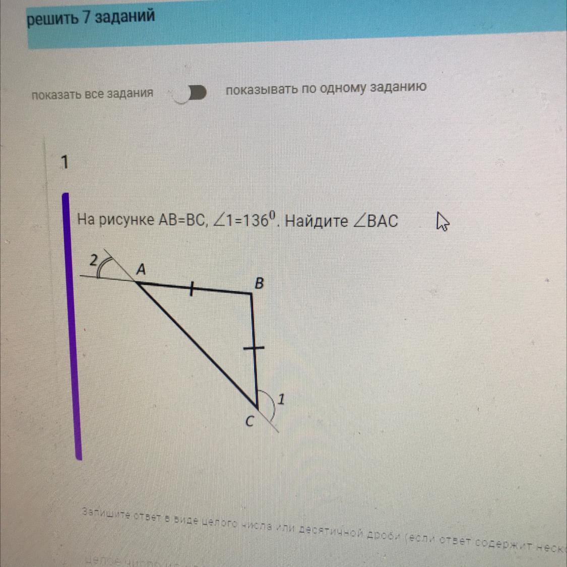 угол ВАС=44, т. к. треугольник АВС равнобедренный и углы при основании равны.
