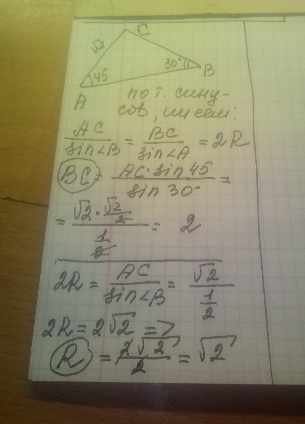 угол В равен 30°. Найдите сторону ВС и радиус описанной окружности.
