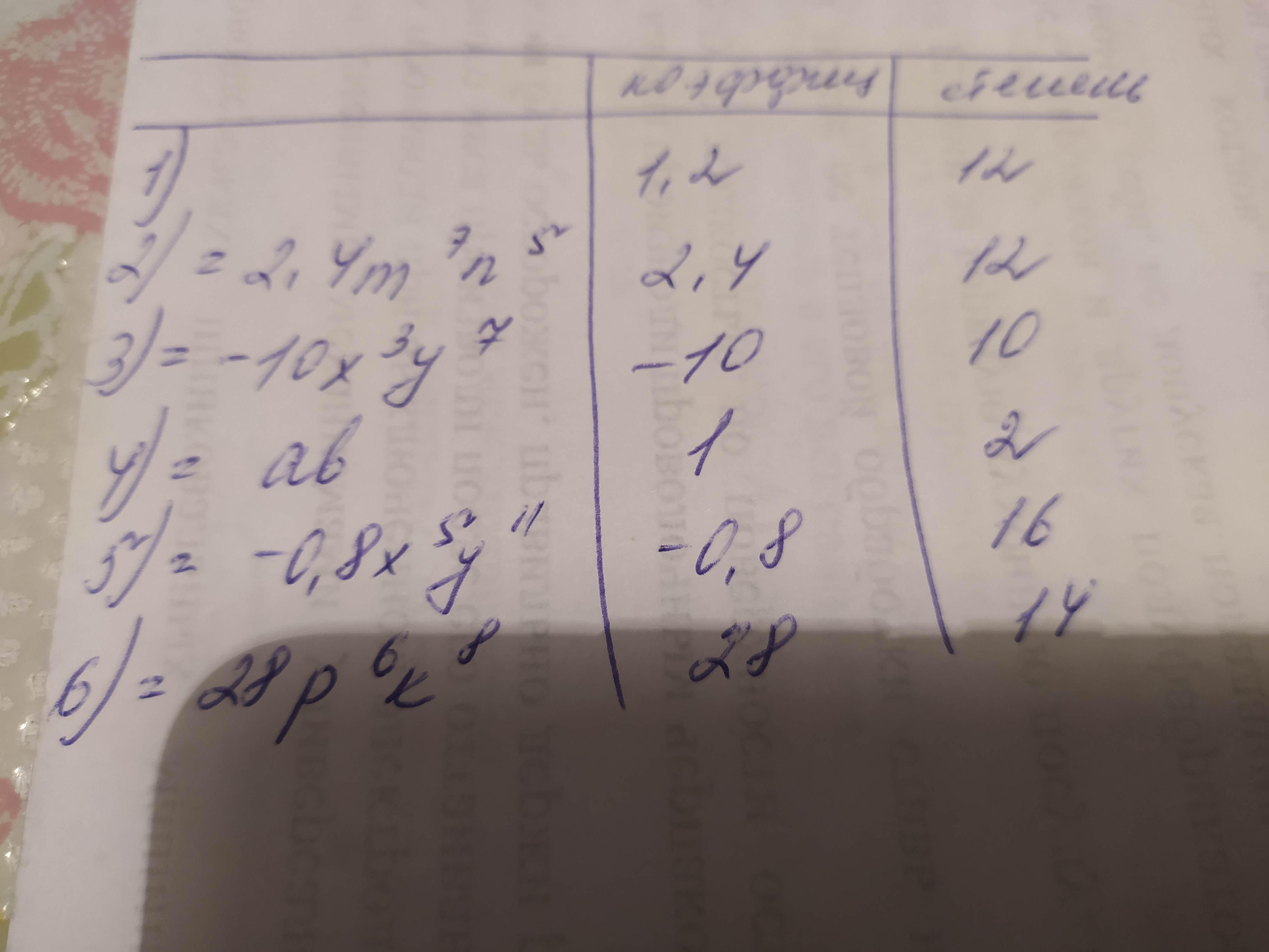 Помгите сделать алгебру, привести к стандартному виду, найти коэффициент и степень. Заранее спасибо! :)