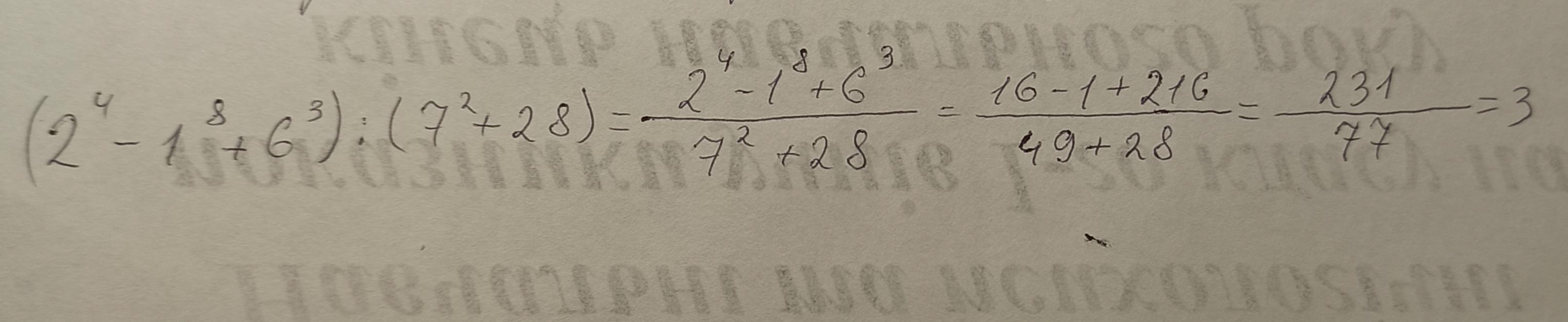 (2⁴-1⁸ + 6³) : (7² + 28)=3