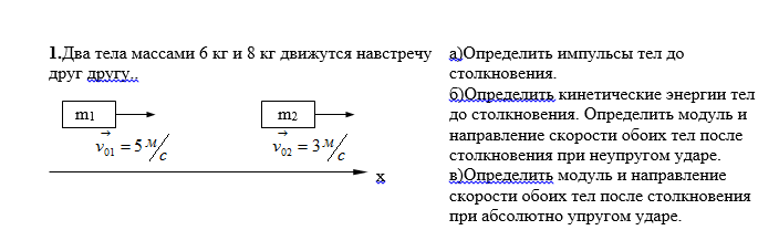 u1=(m1-m2)*(v1-v2)/(m1+m2) + v2=(6-8)*(5-3)/(6+8) + 3= 2,714286 м/с