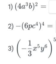 2) -(6рс⁴)⁴=-6⁴ р⁴ с¹⁶= -1296 р⁴ с¹⁶