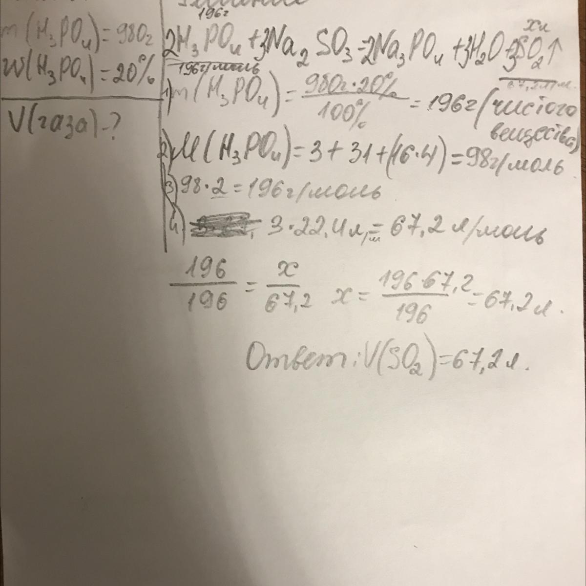 Вычислите, какой объем газа можно получить при растворении сульфита натрия в 980 г