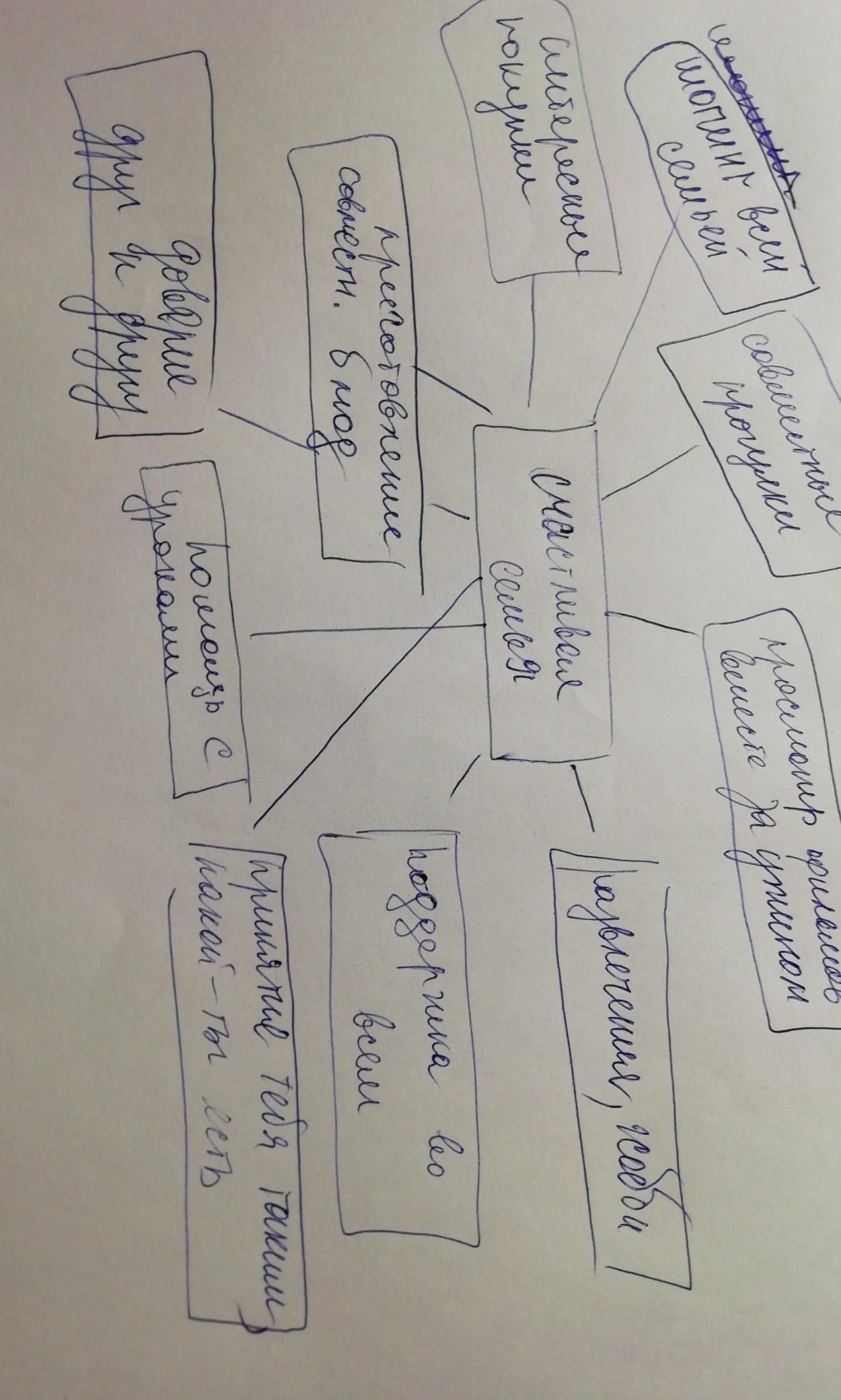 Счастливая семья: здоровье, радость, хорошее настроение, уважение, тёплый дом, все члены семьи рядом, каждый занят своим делом.