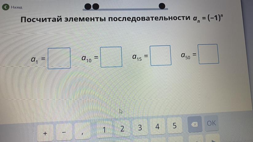 надо вместо n подставить его значение,а1 т.е n=1 (-1) в 1 степени =-1