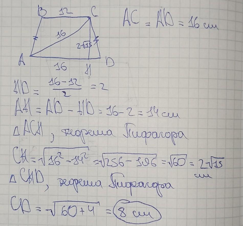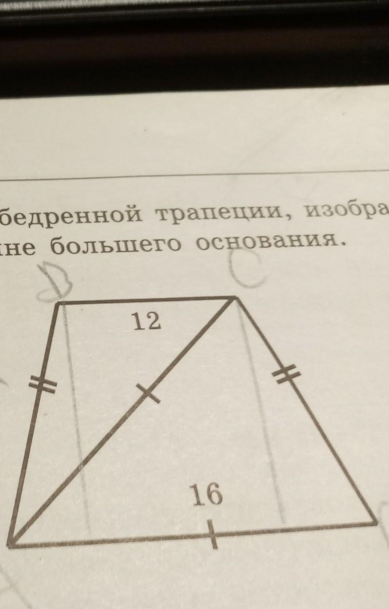 Найдите боковую сторону разобедренной трапеции, изображенной на рисудке, в кото-