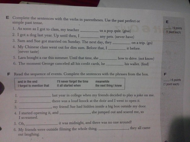 have never had 3 went 4 had never tasted 5 hadn’t known 6 found