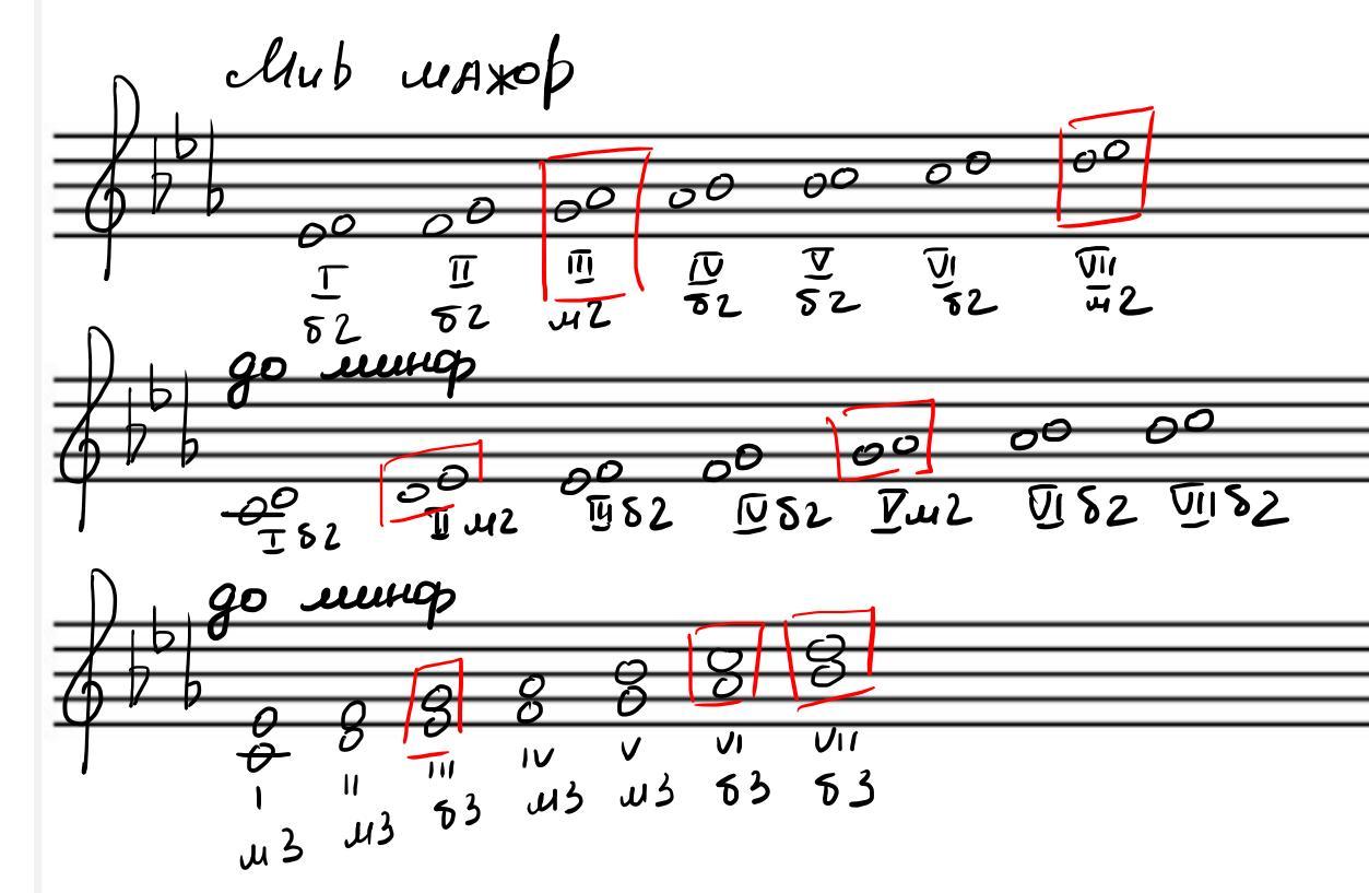 В мажоре малые секунды на III и VII ступени
