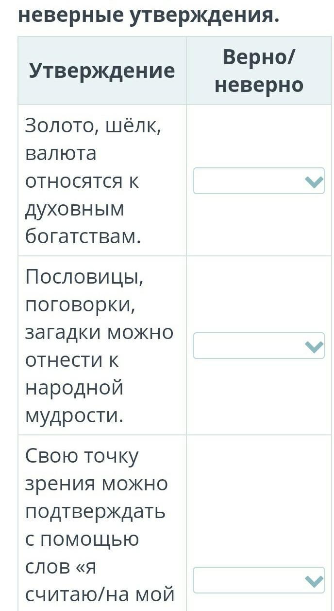 1) неверно, к духовным богатствам относятся положительные человеческие кач-ва, такие как: доброта, честность и тд.