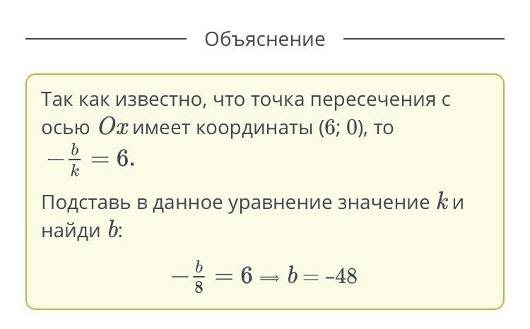 Для функции y = 8х + b найди значении b, если известно, что точка пересечения с осью От имеет