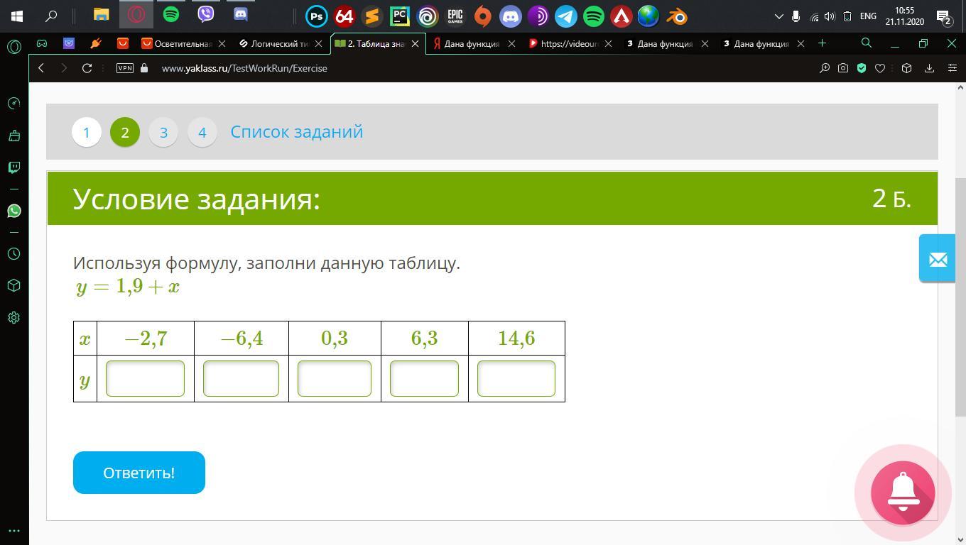y = 1,9 + (14,6) = 1,9 + 14,6 = 16,5