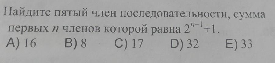 найдите пятый член последовательности, сумма первых n членов которой равна 2^n-1 + 1