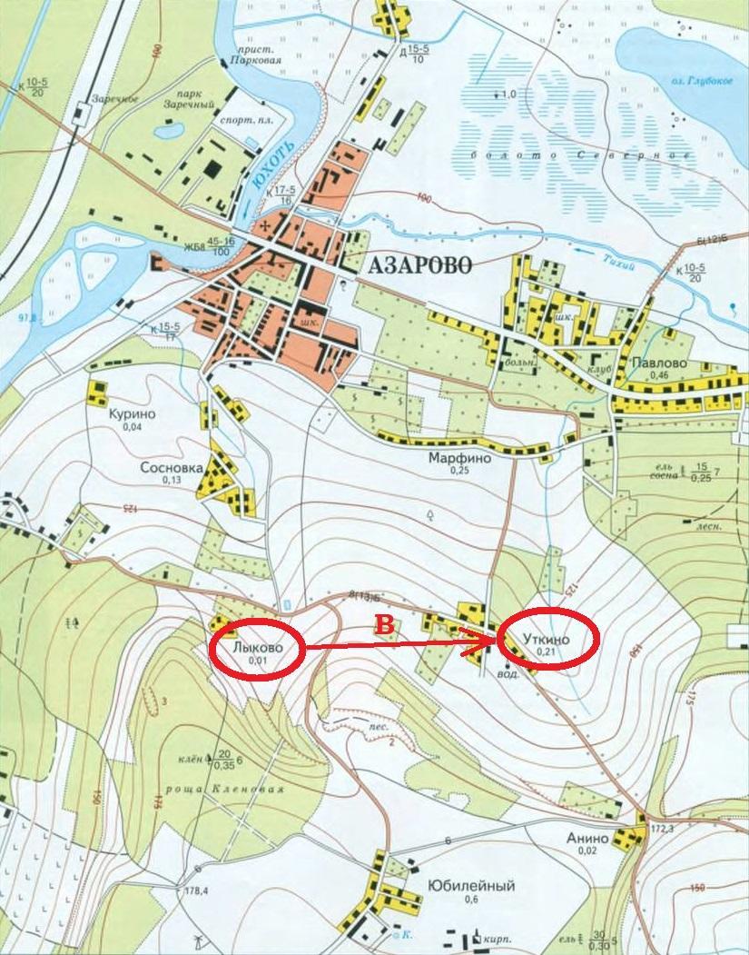 На карте видно, что село Уткино находится в восточном направлении относительно села Лыково.