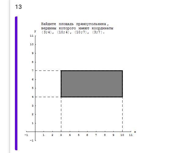 найдите площадь прямоугольника вершины которого имеют координаты (3;4) (10;4) (10;7) (3;7)