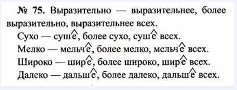 Образуй все возможные степени сравнения наречий. Легко — легче (простая сравнит). менее легко (сост. оравнит.); наименее легко, легче всех (сост. превосх.). Выразительно Выразительнее менее выразительно Сухо — Мелко Широко Далеко