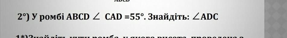 АС биссектриса угла А ромба, ⇒ ∡А=55*2=110°;