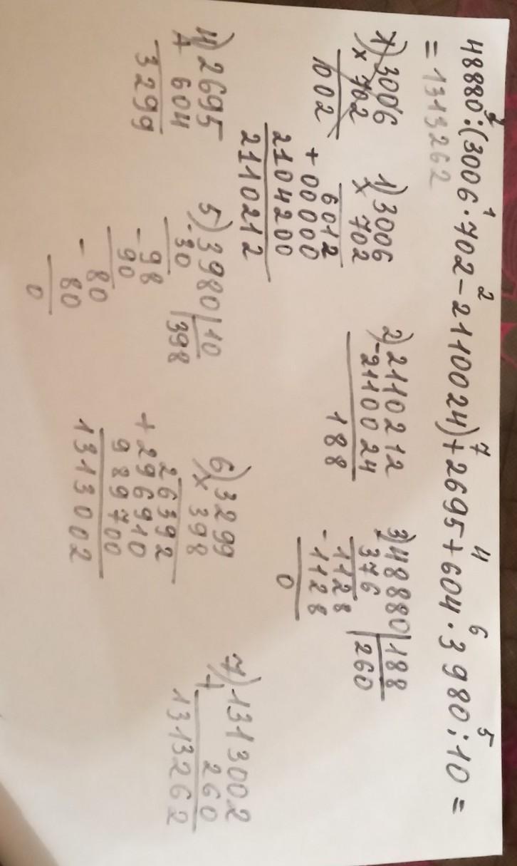 48880:(3006•702-2110024)+2695+604•3980:10 в столбик кто сделает на того подпишусь и поставлю лайк
