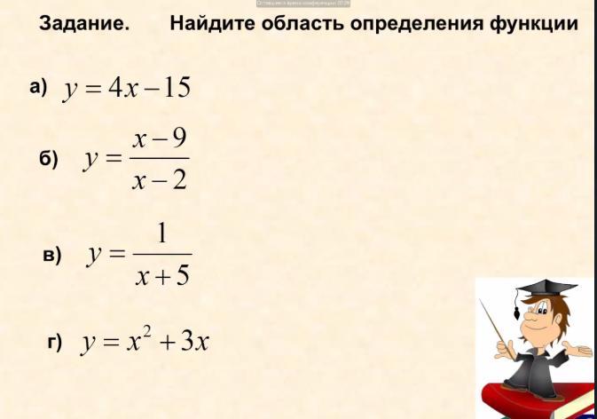Исходя из сказанного, для задания (а), область определения функции-все значения х