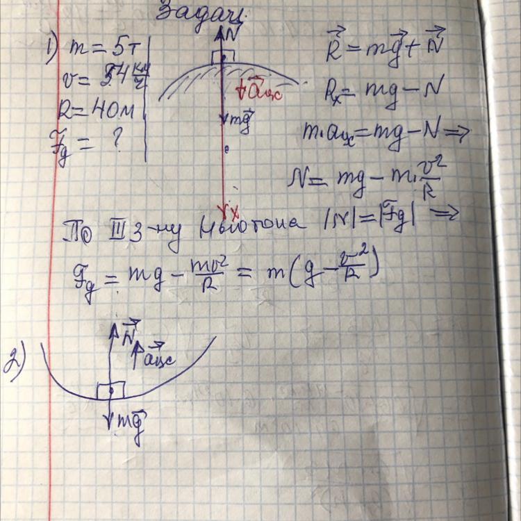 ох: N-mg=ma