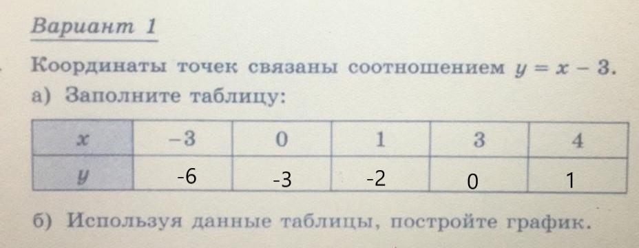 Просто построй ось Ох и Оу. На них отметь цифры. И подставляя значения наноси точки.