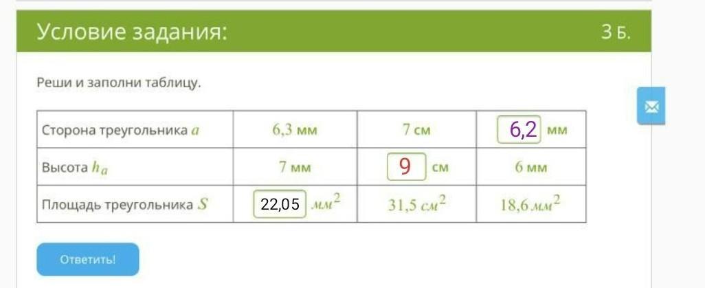 S∆=0,5ah => h=S/0,5a; a=S/0,5h