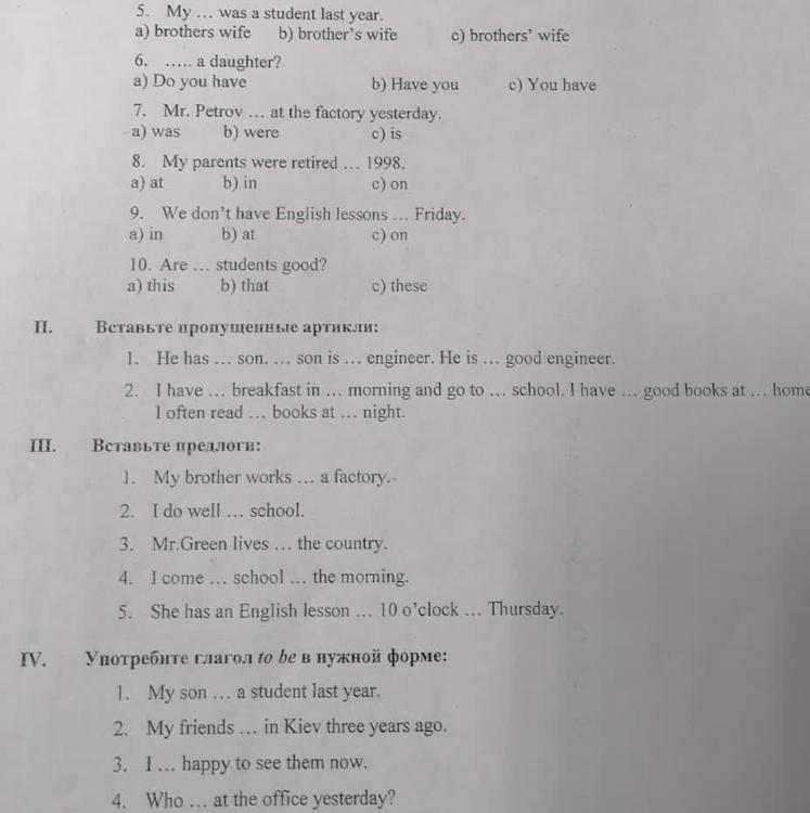 II. 1. a, his, an, a.