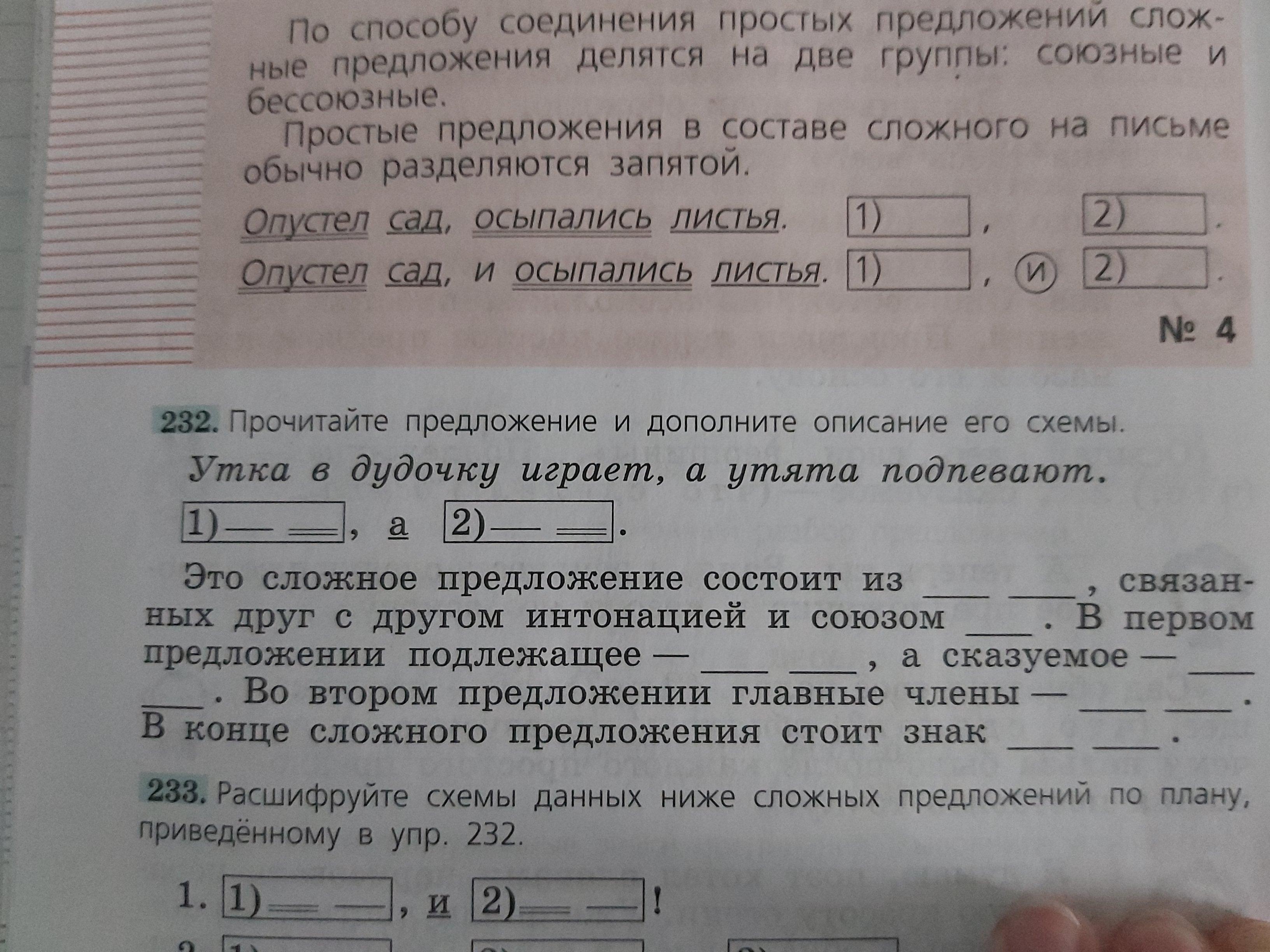 Это сложное предложение состоит из 2 простых предложений, связанных друг с другом интонацией и союзом и. В первом предложении подлежащее - утка, а сказуемое - играет. Во втором предложении главные члены - утята подпевают. В конце сложного предложения стоит знак точка.