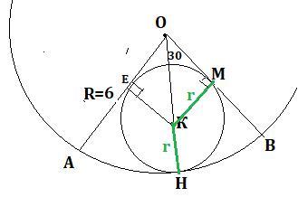 ΔОКМ -прямоугольный , по свойству угла 30° ,r=КМ=1/2*ОК.