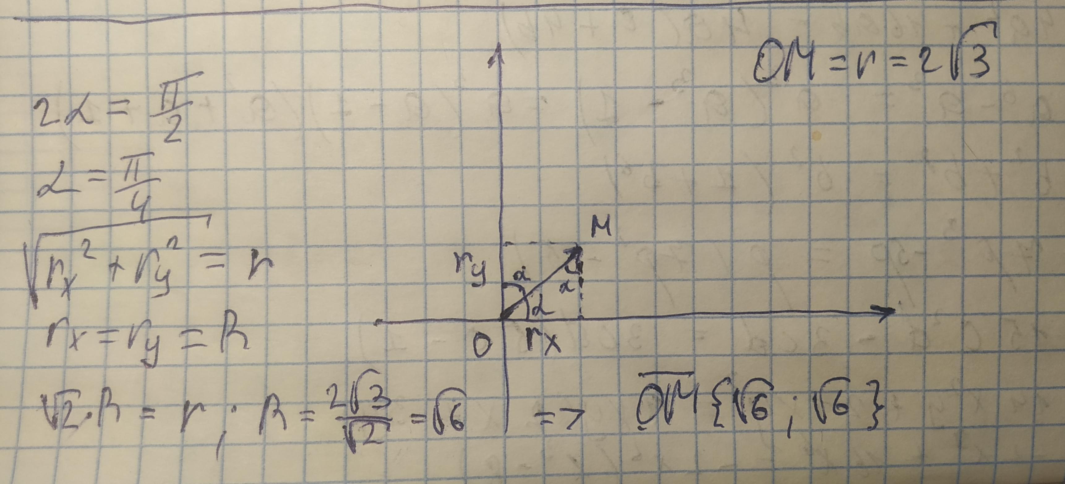Определить эти углы и построить вектор r, если его длина равна 2 корня из 3