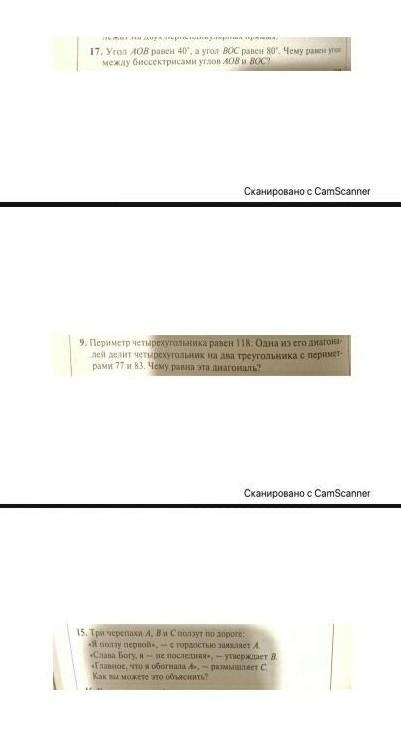 9. Пусть стороны четырехугольника равны a,b,c,d, а диагональ между ними равна e. Выразим через эти обозначения известные нам периметры: