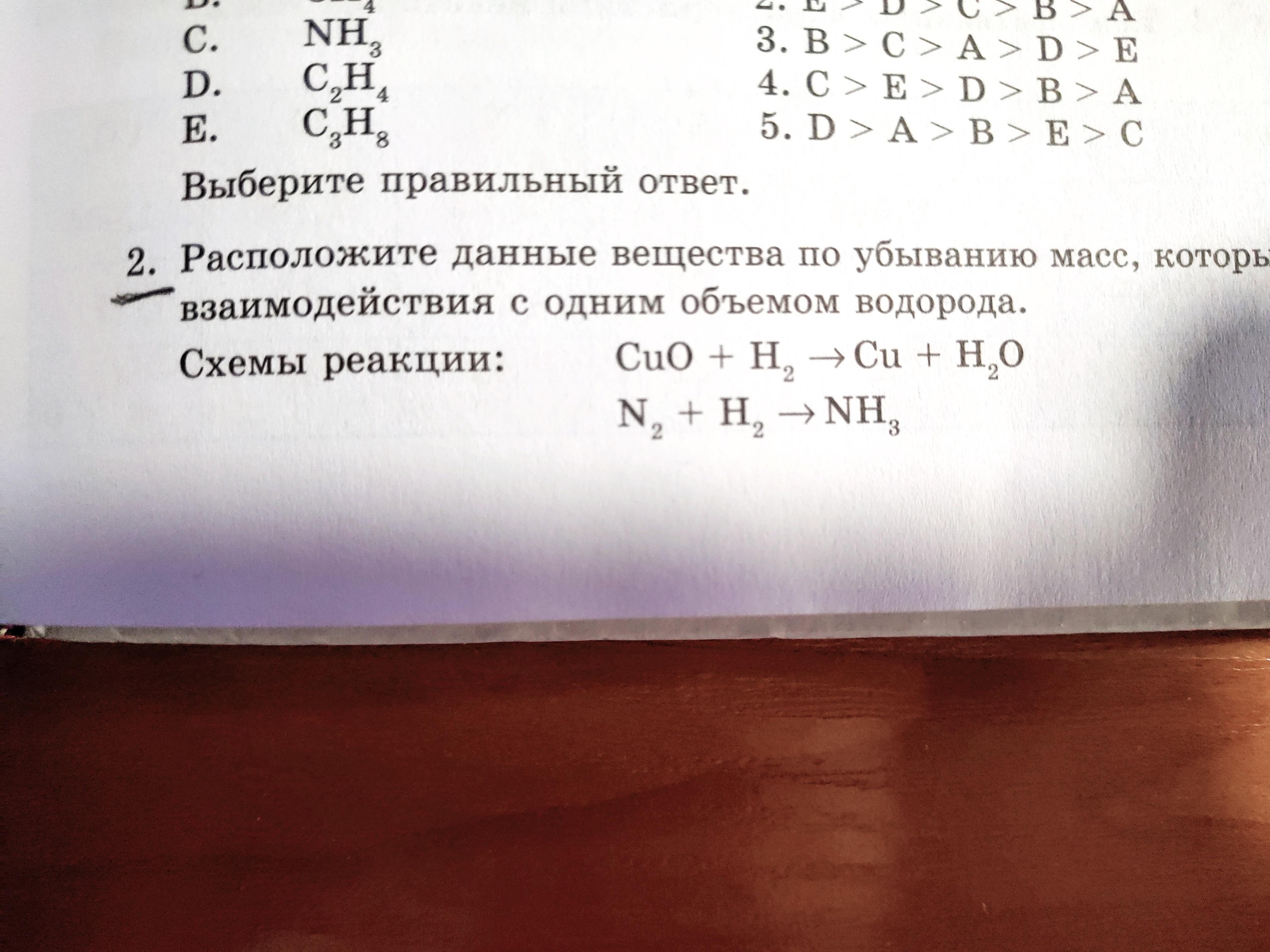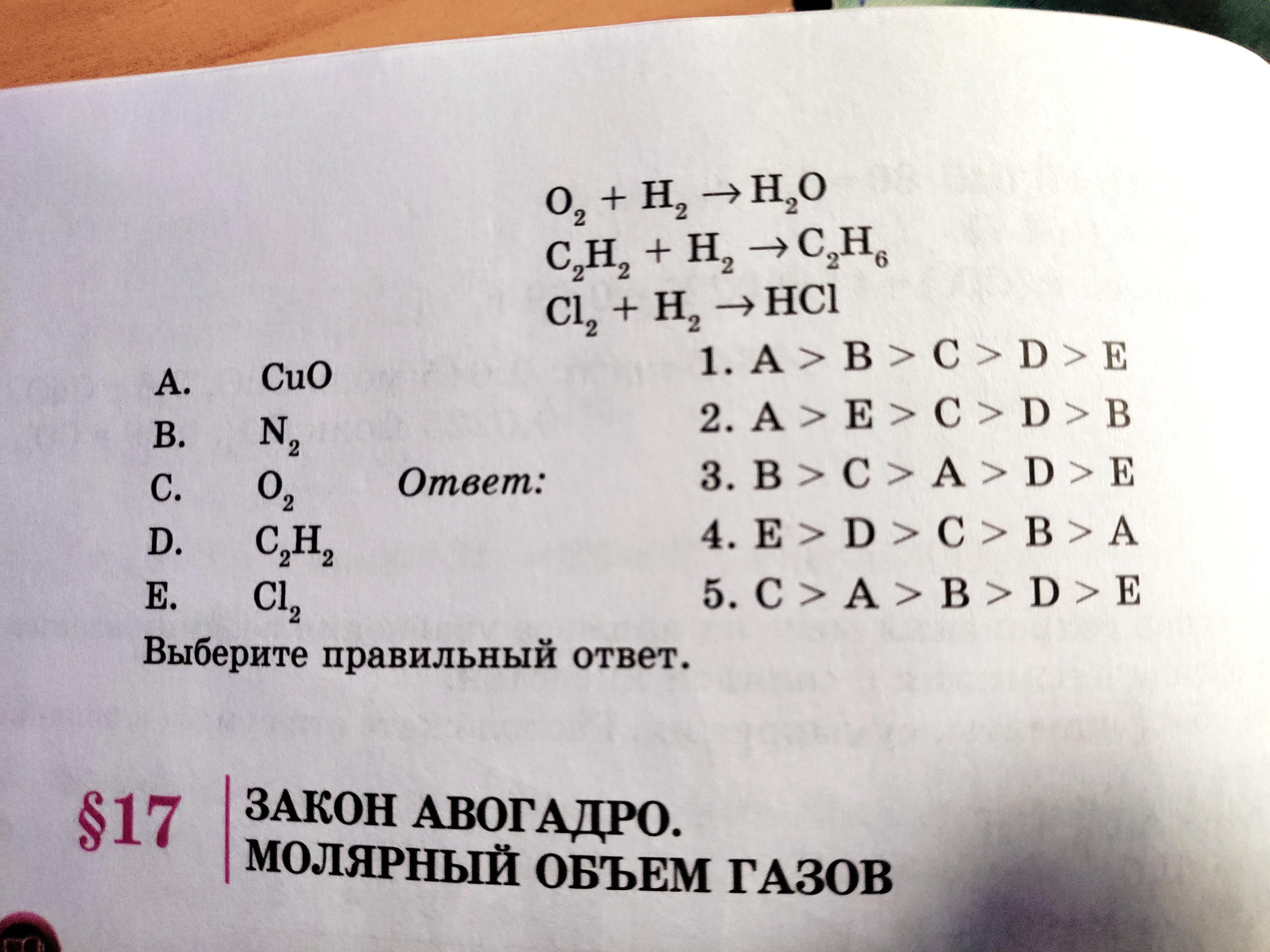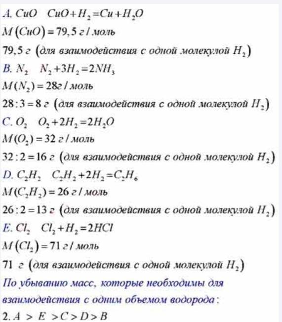 Расположите данные вещества по убыванию масс, которые необходимы для взаимодействия с одним объемом водорода.