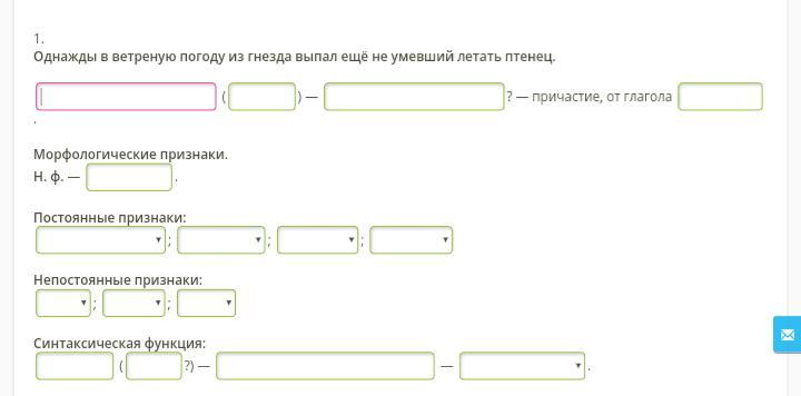 Птенец (какой?) не умевший - определение.