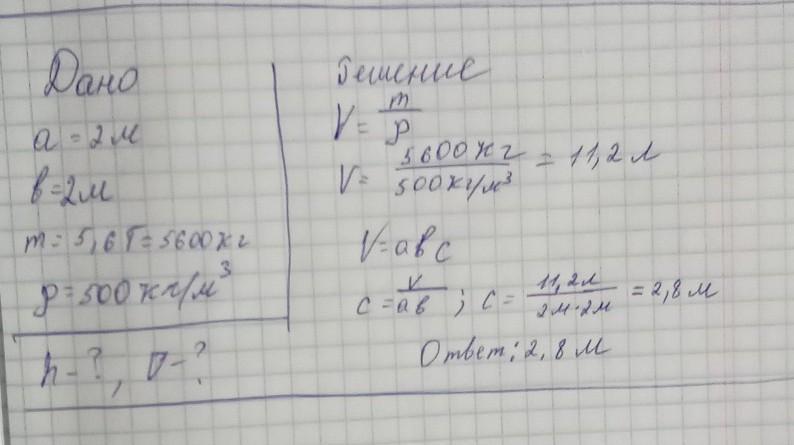 Дан дубовый брус длиной и шириной по 2 м. Масса бруса 5,6 т. Чему равна высота?