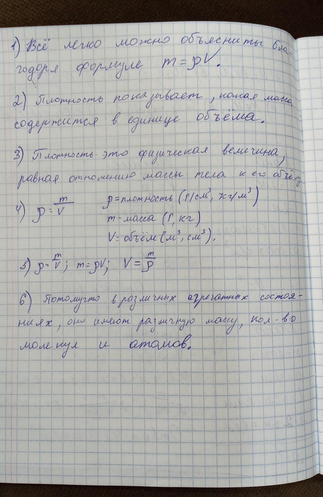 1. Чем можно объяснить, что тела, имеющие разные объёмы, могут иметь равные массы, а тела, имеющие равные объемы, могут иметь разные массы?