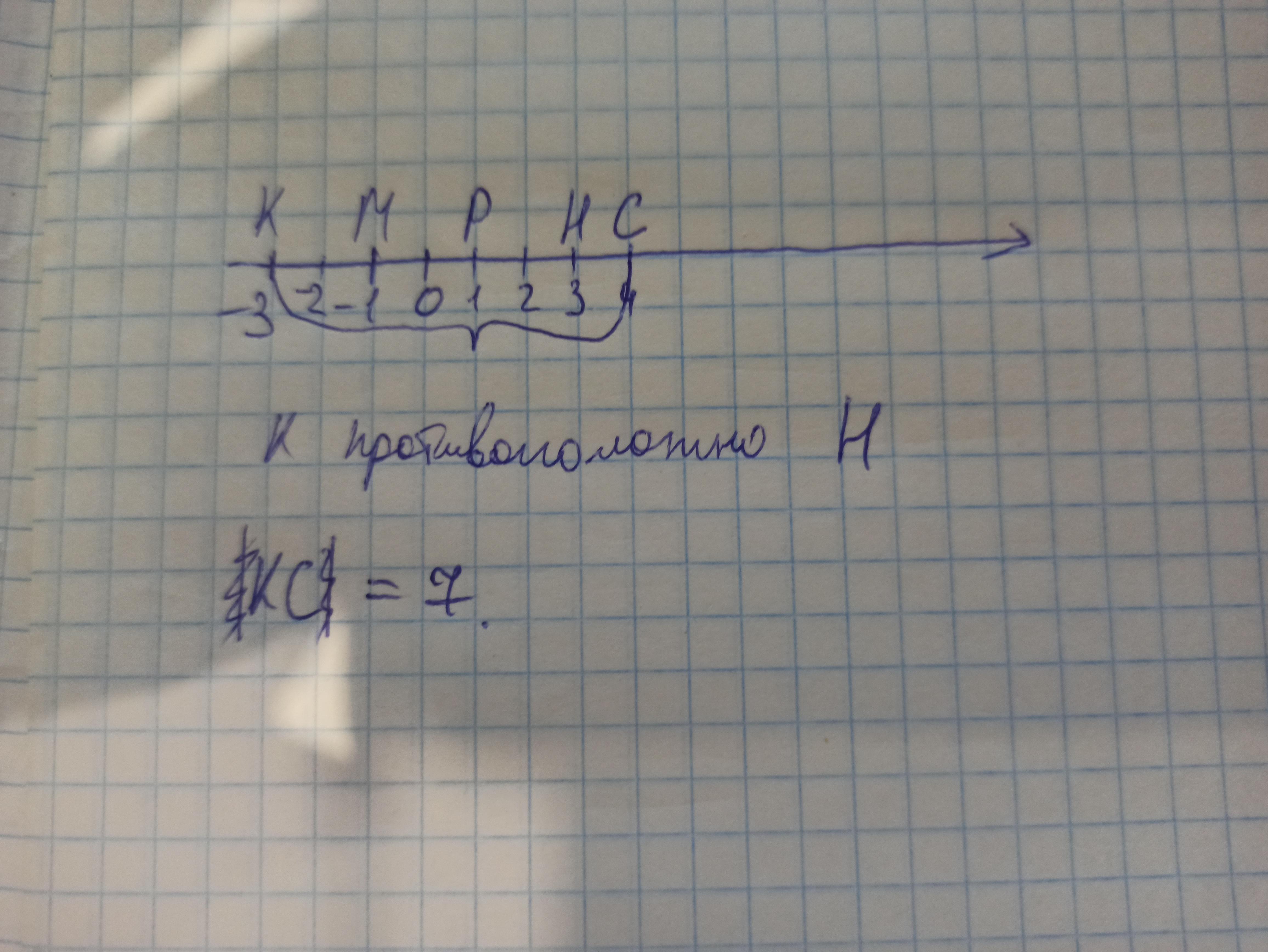 Отметить на координатной прямой точки М(-1), Н(3), К(-3), Р(1), С(4). Какие из этих точек имеют противоположные координаты? Найти длину отрезка KС.