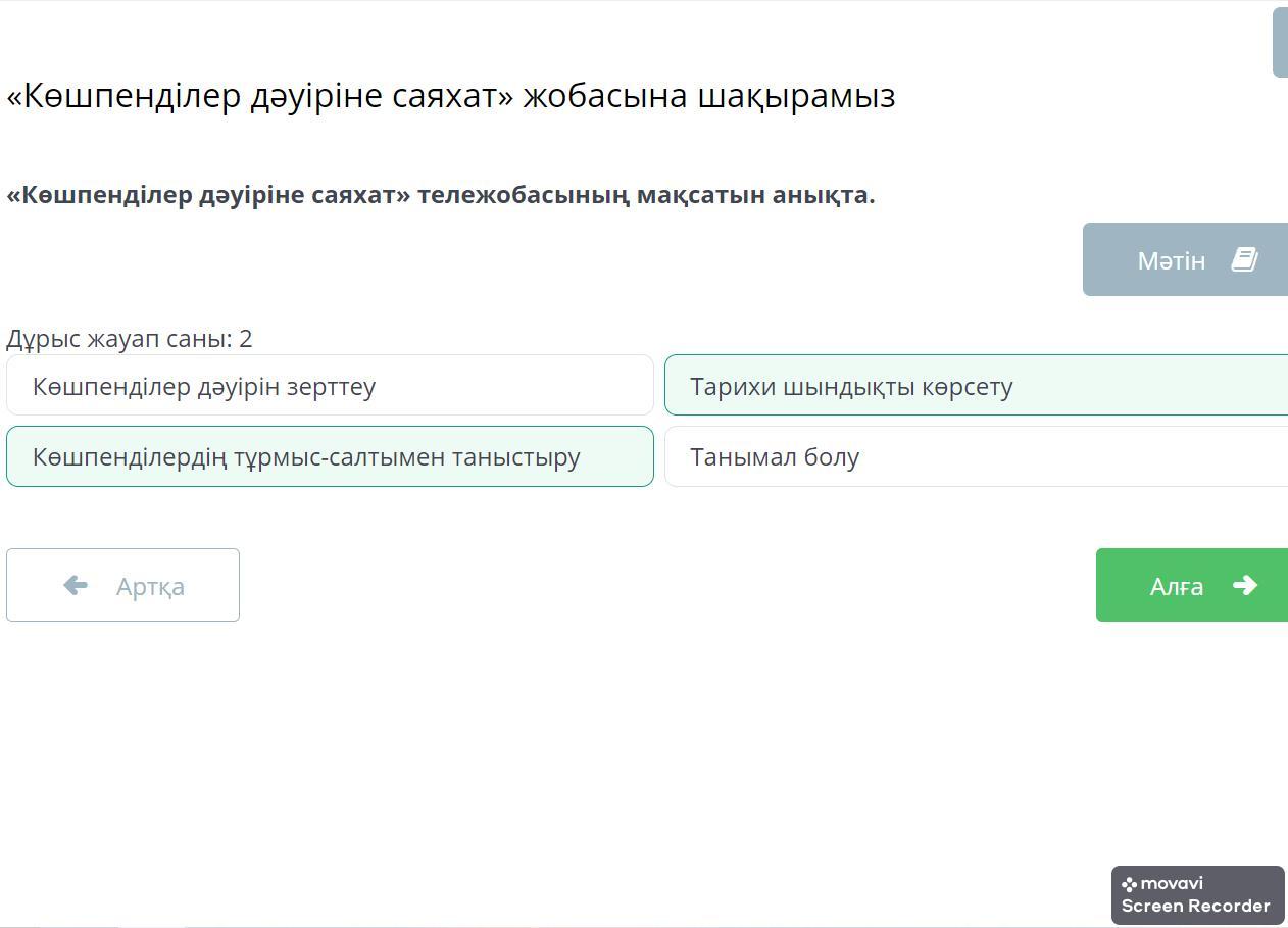 «Көшпенділер дәуіріне саяхат» тележобасының мақсатын анықта.