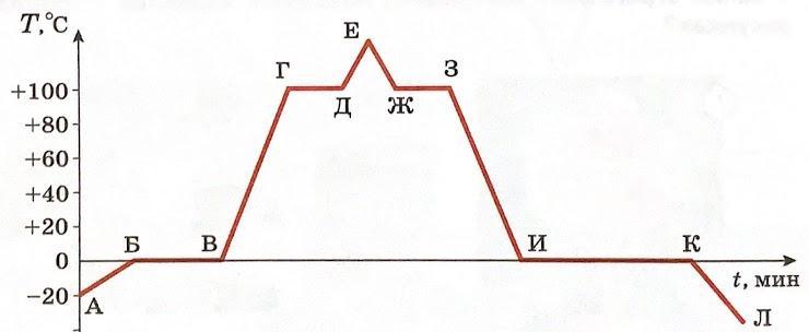 На рисунке изображён график зависимости температуры воды от времени. Выберите участок соответствующий процессу плавления